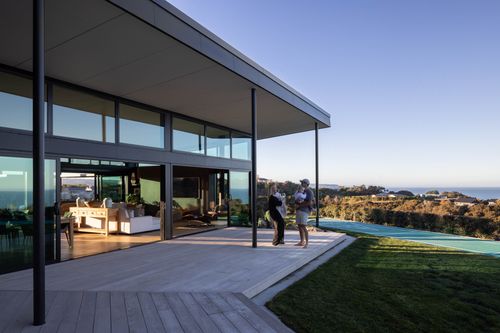 These volumes are oriented to suit the greater Hawkes Bay region and coastline. One is directed towards the Mahia Peninsula to the Northeast, while the other faces Cape Kidnappers and Napier City to the Southeast. The resulting pocket of space frames the outer extents of the Hawkes Bay coastline, and creates a panoramic view of the wider region - while privately nestled out of the sightline of any neighbours.